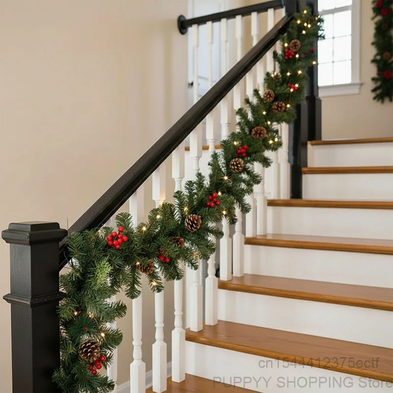Southern Bloom 2.7M Pre-Lit Christmas Garland with Pinecones & Red Berries – Handmade Artificial Rattan Wreath for Doors, Mantels & Holiday Decor