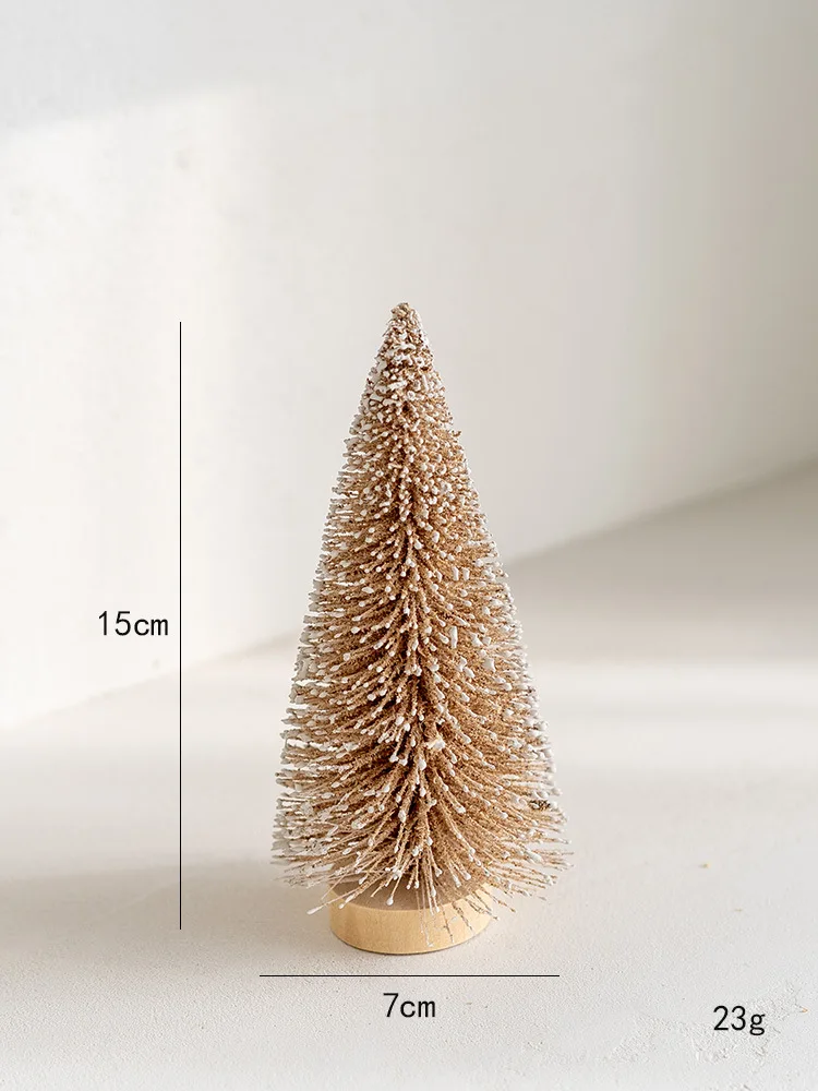 Desktop Miniature Christmas Trees Mini Pine Tree with Snow and Wood Base for Xmas Holiday Party Home Tabletop Car Decor
